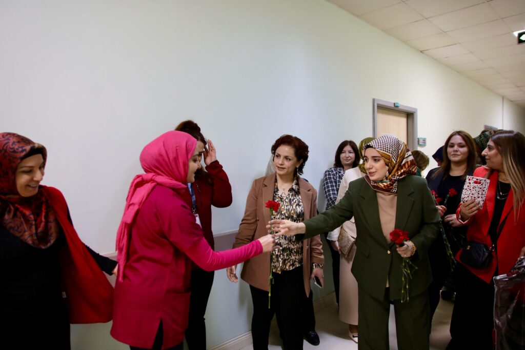 Ziyaret kapsamında, hastanede görev yapan sağlık çalışanlarıyla bir araya gelinerek onların özverili çalışmaları takdir edildi ve Dünya Kadınlar Günü kutlandı. Sağlık personeline çiçek ve çeşitli hediyeler takdim ederken, hastanede tedavi gören kadın hastalar ve hasta yakınları da unutulmadı. Ziyaret edilen kadınlara geçmiş olsun dilekleri iletilerek moral verildi ve günün anlam ve önemine binaen hediyeler sunuldu.