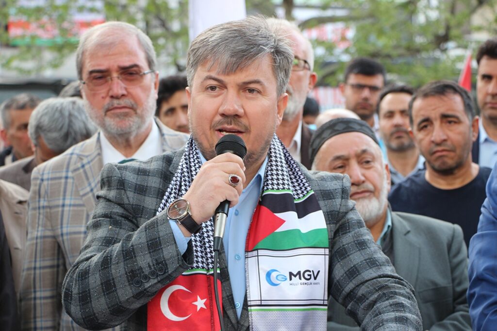 Bugün burada İslam ümmetinin iftiharı olan kardeş Hamas hareketinin meydanlara inilmesi çağrısı üzerine toplanmış bulunmaktayız.