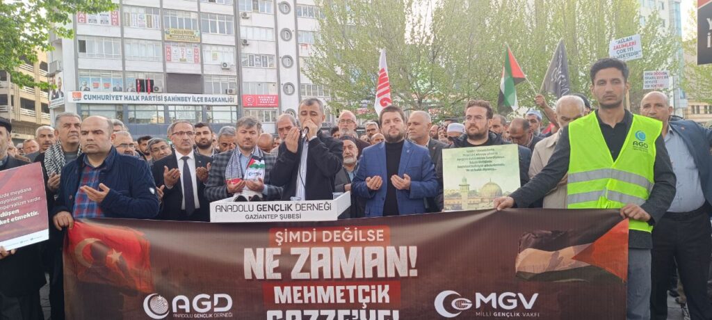 Anadolu Gençlik Derneğinin tüm Türkiye’de düzenlediği basın açıklamaları Gaziantep’te de Anadolu Gençlik Gaziantep Şubesinin öncülüğünde, Kudüs Platformu, Milli Görüşçü Kuruluşlar Platformu ve birçok sivil toplum kuruluşunun katılımıyla gerçekleştirildi.