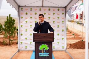 “Her yıl Kasım ve Mart aylarında Tarım ve Orman Bakanlığımız, Çevre, Şehircilik ve İklim Değişikliği Bakanlığımız ve Büyükşehir Belediyemiz ile görüşerek, planlamalarda ağaçlama alanı olan noktalardaki yeşillendirme çalışmalarımıza devam ediyoruz. Özellikle farkındalığı artırabilmek adına da çocuklarımız ile bu işi gerçekleştiriyoruz. Okul ziyaretlerimizde söz vermiş olduğumuz okullarımız ile bugün bunu icra edeceğiz. Yine mümkün olduğu kadar ağaç dikimi yapmış olduğumuz bölgede bulunan okuldaki öğrencilerimizle bu işi gerçekleştiriyoruz. Gaziantep; sanayisi, ekonomisi, ihracatıyla büyüyen bir şehir. Bu büyümeyle birlikte nüfus artışı da çok hızlı. Nüfus artış hızıyla birlikte yeşil alan ihtiyacımız da gün geçtikçe artmaktadır. Yeni yapmış olduğumuz imar plan çalışmalarında da mümkün olduğu kadar küçük ölçekli alanlar değil, mümkün olduğu kadar büyük alanları seçmeye gayret gösteriyoruz. Şu anda içerisinde bulunduğumuz alan yaklaşık 40 dönümlük bir alan. Bu alan ile birlikte toplamda, 2 milyon 300 bin metrekareden fazla alanda ağaçlama çalışmasını yapmış olacağız. İnşallah görev süremiz devam ettiği müddet içerisinde de bu faaliyetimizi devam ettireceğiz. İlk başladığımızda yalnızca çam ağaçları dikiyorduk. Daha sonra zeytin, badem, alıç, akçaağaç gibi ağaç çeşitliliğini arttırarak, özellikle yaban hayvanlarının beslenmesini sağlayacak meyvesi olan fidanlar dikmeye gayret gösterdik. Köylerimize yakın olan bölgelerde tamamen badem, ceviz, zeytin ağaçları dikerek, o bölgenin de ekonomisine destek olmaya gayret gösterdik. Tabii bu iş bakım gerektiriyor, ilgi gerektiriyor. Şu anda dikmiş olduğumuz bu ağaçların iki yıl can sularını vermek adına ekip arkadaşlarımız her yaz bunları tek tek suluyorlar. Artık ağaç kendine geldikten sonra doğal ortamına bırakıyoruz, ondan sonra da komşularımıza, hemşerilerimize emanet ediyoruz. İlk dikmiş olduğumuz fidanların boyları neredeyse 6 metreyi geçmiş durumda. İnşallah, yıllar sonra da buradaki ağaçlar boy atacak, bu bölgelerde belki piknik alanı olarak bu mahallemize hizmet edecek. Ben, bu noktada emek veren tüm muhtarlarımıza, meclis üyelerimize, emek veren tüm çalışma arkadaşlarımıza, teknik ekibimize yürekten teşekkür ediyorum.”