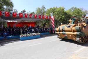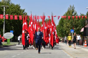 Pyd. Yüzbaşı H üseyin Türkkahraman tarafından günün anlam ve önemine binaen yapılan konuşmanın ardından öğrencilerin okudukları şiirler ve halk oyunları gösterisi ile devam eden tören, 30 Ağustos Zafer Bayramı dolayısıy geçiş merasimi ile son buldu la yapılan kutlamalar akşam 19.3 0’da . Panaroma Müzesi’nde yapılacak olan Zafer Bayr amı Kabul töreni ile sona erecek .