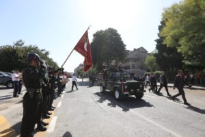 Akabinde Vali Davut Gül, protokol üyeleri ile birlikte İstasyon Meydanı’nda yapılan 30 Ağustos Zafer Bayramı Kutlama Programına katıldı. Alana askeri tören aracı ile giren Vali Davut Gül, Garnizon Komutanı Tuğgeneral Hacı Halil Osma ve Büyükşehir Belediye Başkanı Fatma Şahin ile birlikte vatandaşları selamlayarak bayramlarını kutladı.