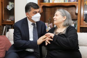 Bizim hukukumuz, ne şu an taşıdığım belediye başkanlığı sıfatından kaynaklanıyor ne de emekli bir öğretmeni tesadüfen ziyaret etmekten kaynaklanıyor. Belediye Başkanı olmadan önce de her zaman görüştüğüm, anne vekili olarak gördüm öğretmenimi bugün ziyaret ettim. Gerçekten bende iz bırakan bir öğretmenim. Bizim hayatımızın şekillenmesine yön veren öğretmenimizin öğrettikleriyle çok şükür bugün memleketimize hizmet etmeye çalışıyoruz. Kendilerinin ‘iyi insan’ olmamız konusundaki telkinleri ve öğretilerini kendimize şiar edinerek bizden sonraki nesiller için çalışıyoruz. İyi insan olarak bizden sonra iyi şeylerin yapılmasına nasıl katkı koyabiliriz, bunun kaygısı içerisindeyiz. Tüm öğretmenlerimizden, Allah razı olsun. Öğretmenlerimiz, iyi ki varlar. Onlar, memleketimize hayırlı hizmetler yaptılar. İnşallah bizler de hayırlı hizmetleri devam ettiririz” ifadelerini kullandı.