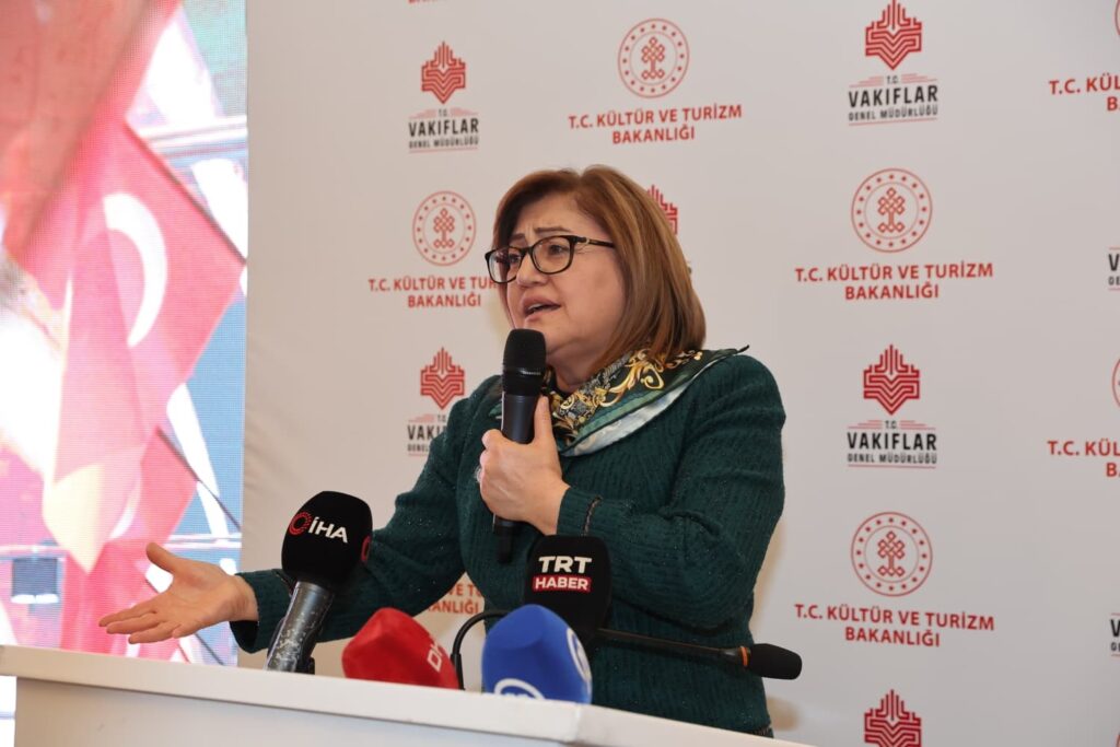 “Sadece bir vakıf eserinin onarımı değil, yani Kale Bölgesinin ayağa kalkması, bir anlamda şehrin deprem anlamında ayağa kalkması gibi bir önemi olduğunu özellikle belirtmek isterim. Biz çok güçlü bir devlet ve çok güçlü bir millet olarak çok iyi gidiyoruz. Ama Gaziantep’te, Gaziantep’in kendine özgü koordinasyonu, birlikte hareket kabiliyeti ve iş takibinden dolayı emin olun daha da önemli diyoruz.”