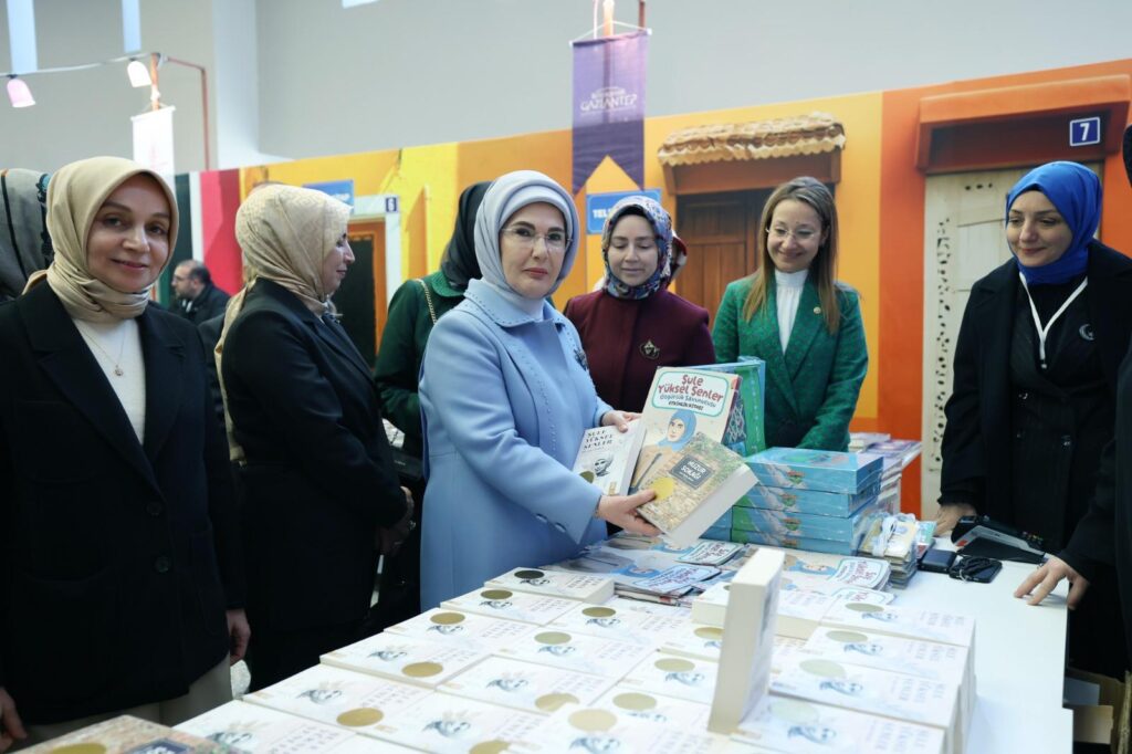 Açılış öncesi alana kurulan stantları gezen Emine Erdoğan Şule Yüksel Şenler’in “Huzur Sokağı” kitabı ile Cumhurbaşkanı Erdoğan’ın “Daha Adil Bir Dünya Mümkün” kitabına ilgi gösterdi. Fuara gelen vatandaşlarla sohbet eden Emine Erdoğan, daha sonra açılış programı için salona geçti.