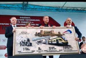 Cumhurbaşkanı Recep Tayyip Erdoğan, Ulaştırma ve Altyapı Bakanı Adil Karaismailoğlu ile Gaziantep Büyükşehir Belediye Başkanı Fatma Şahin, hizmete hazır hale getirilen GAZİRAY ile Beylerbeyi durağından Gaziantep Gar istasyonuna gelerek senfoni orkestrasının seslendirdiği bestesi Yücel Arzen’e ait “Türkiye Yüzyılı” parçasını dinledi.
