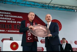 Törende Cumhurbaşkanı Recep Tayyip Erdoğan, Ulaştırma ve Altyapı Bakanı Adil Karaismailoğlu ile Gaziantep Büyükşehir Belediye Başkanı Fatma Şahin’in yanı sıra Tarım ve Orman Bakanı Vahit Kirişci, Gaziantep Valisi Davut Gül ile il protokolü bulundu.