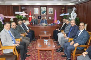 Özcan da Göçer ve heyetine ziyaretlerinden dolayı teşekkür etti. Göçer, Özcan’a Ayasofya-i Kebir Camii Şerifi tablosu hediye etti.