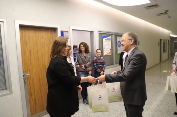 SANKO Üniversitesi İnsan Kaynakları Müdürlüğü tarafından düzenlenen ve Sağlık Bilimleri Fakültesi Dekanı Prof. Dr. Türkan Pasinlioğlu, SANKO Üniversitesi Hastanesi Genel Müdürü Dr. Sermet Kileci ile Tıp Fakültesi Tıbbi Farmakoloji Ana Bilim Dalı Öğr. Üyesi Prof. Dr. Mehtap Özkur’un da bulunduğu ziyarette, çalışanlara armağan takdim edildi.