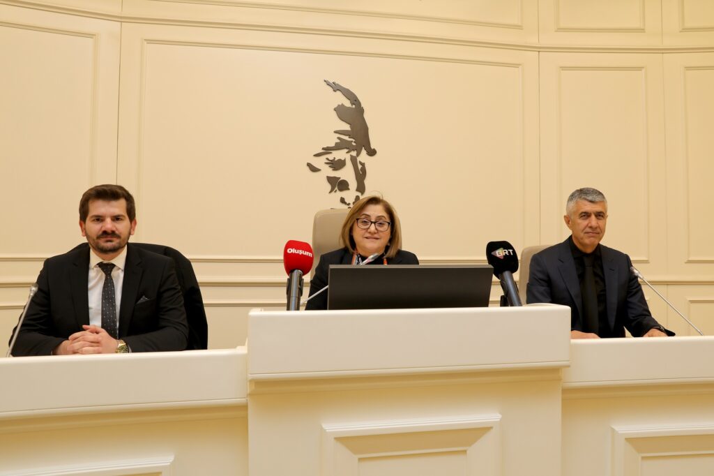 Büyükşehir Belediye Meclis Toplantı Salonu’nda gerçekleşen toplantıda Gaziantep Büyükşehir Belediye Başkanı Fatma Şahin, birleşim maddeleri öncesi meclis üyelerine sunum yaptı. Gazi şehirde Cumhurbaşkanlığı 2025 Yatırım Programı kapsamında metro, BÜSEM, GAZİRAY tren setleri, Çetintepe Barajı içmesuyu temini, OSB Acil Travma ve Yanık Hastanesi, tarımsal sulama projeleri gibi büyük çalışmaların olduğu 65 vizyon projeyi tek tek anlattı.