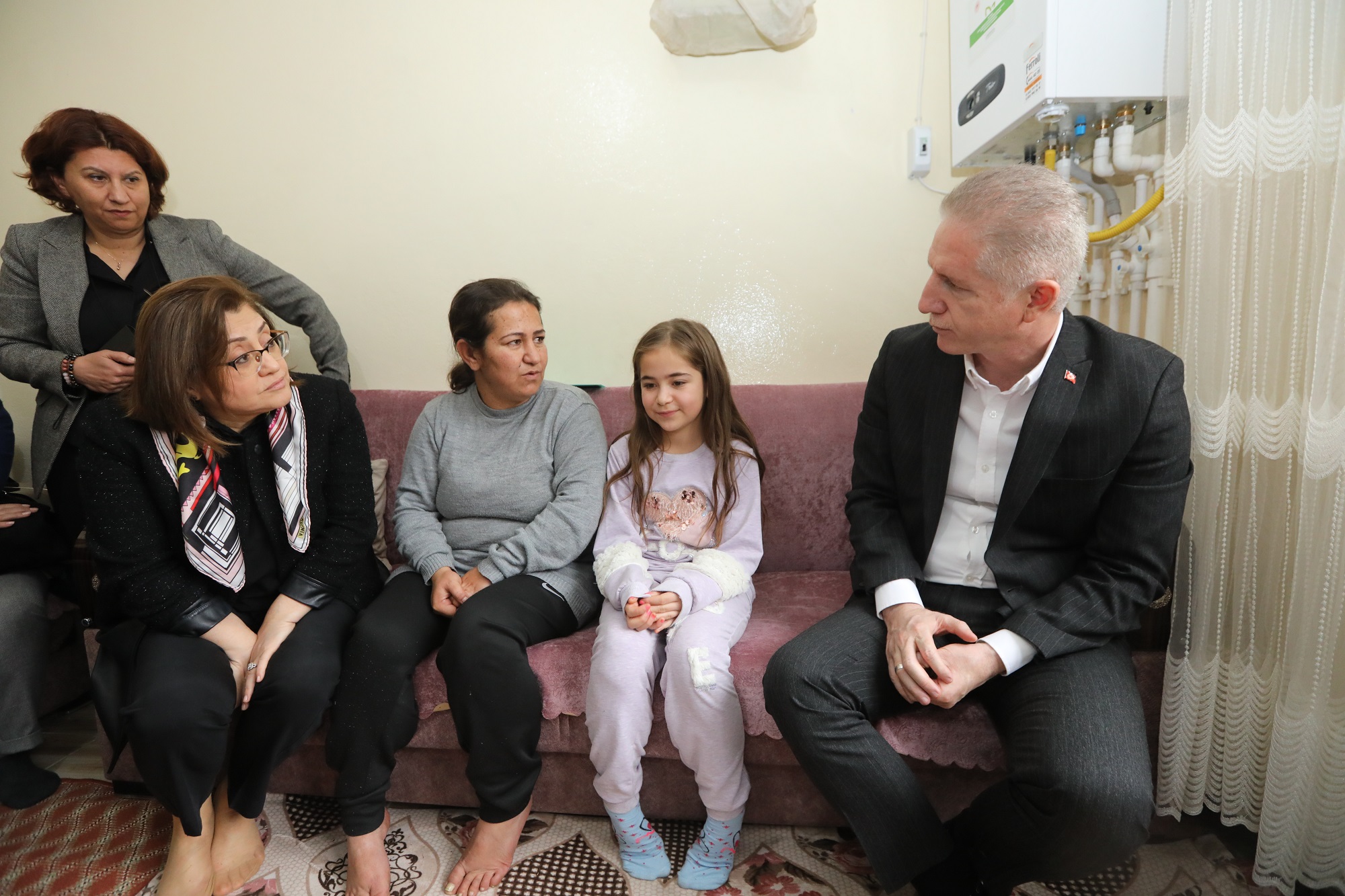 Gaziantep Büyükşehir Belediyesi Başkanı Fatma Şahin, Çevre Şehircilik ve İklim Değişikliği Bakanlığı iş birliğinde Gaziantep’te hava kalitesinin iyileştirilmesi kapsamında yürütülen doğalgaz yardım projesi kapsamında yapım işleri tamamlanan bazı evlere ziyarette bulundu.