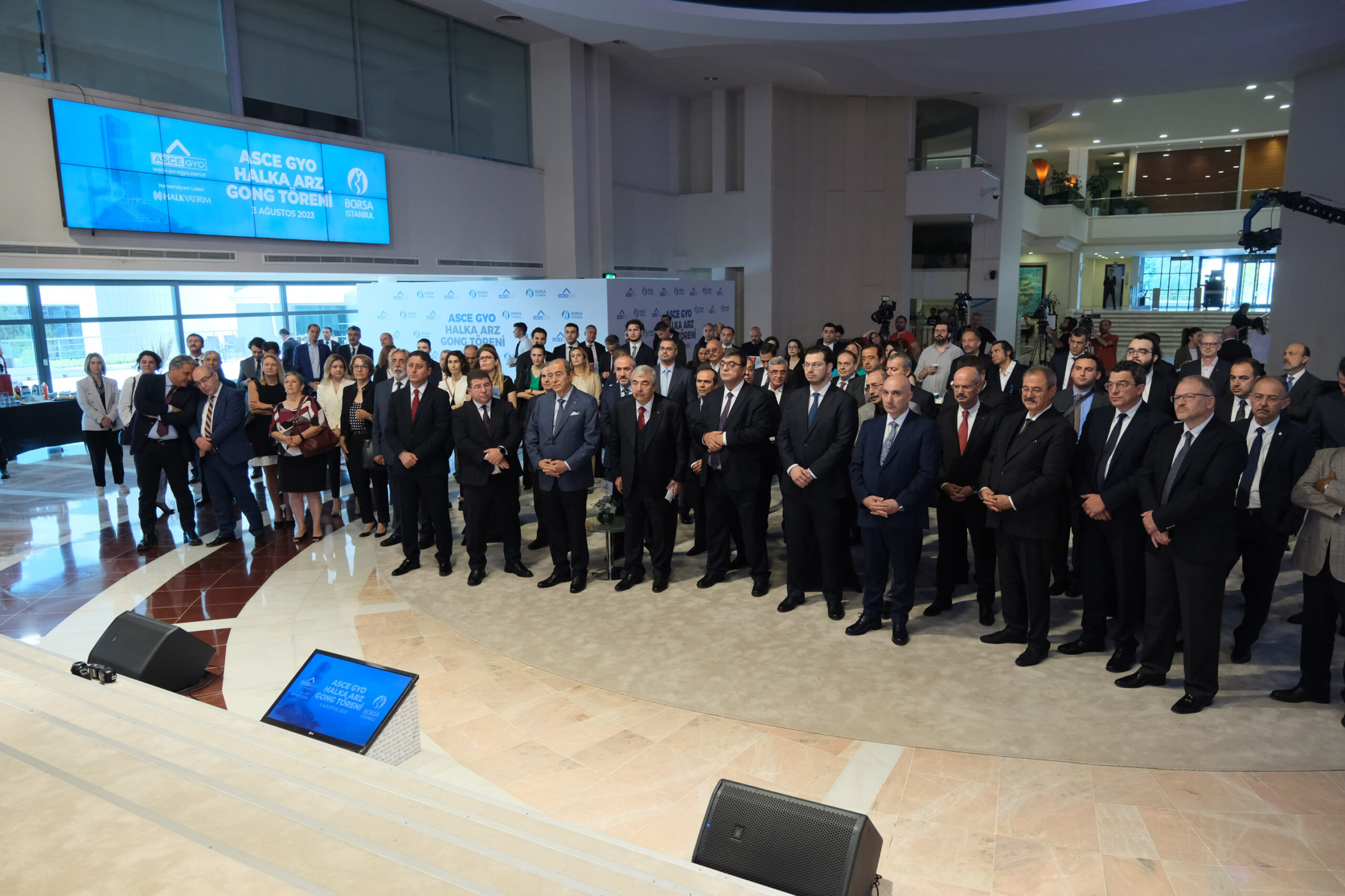 Borsa İstanbul’da düzenlenen gong törenine Borsa İstanbul AŞ Genel Müdürü Korkmaz Ergün, Halkbank Genel Müdürü Osman Arslan ASCE GYO Kurucusu ve Hakim Ortağı Abdulkadir Konukoğlu, ASCE GYO Ortağı Sami Konukoğlu, ASCE GYO Ortağı Cengiz Konukoğlu, ASCE GYO Danışmanı Celaleddin Koçer, ASCE GYO Yönetim Kurulu Başkanı Ahmet Uğur, halka arz konsorsiyum lideri Halk Yatırım Genel Müdürü Bülent Sezgin ile 37 konsorsiyum üyesi kurumun temsilcileri katıldı.