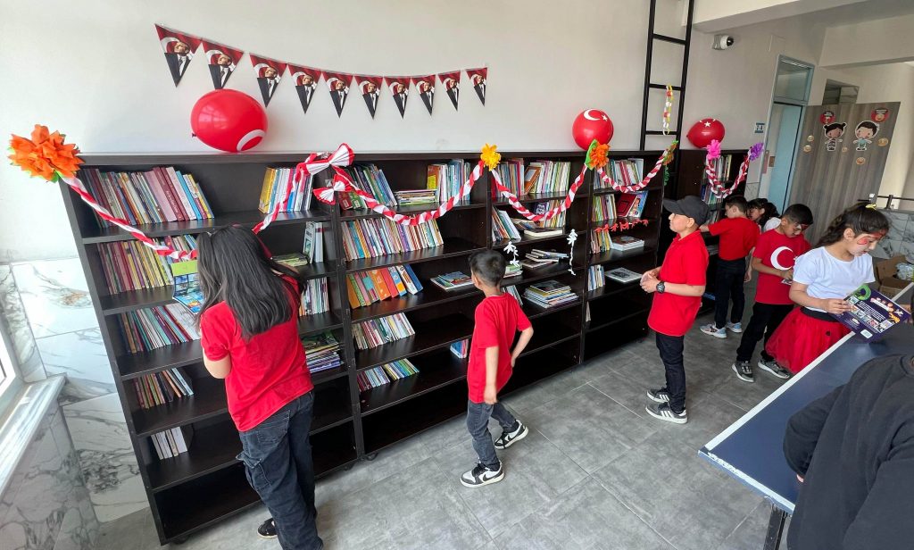 Köyü’nde bulunan okula kütüphane kazandıran öğrenciler, aynı zamanda 23 Nisan