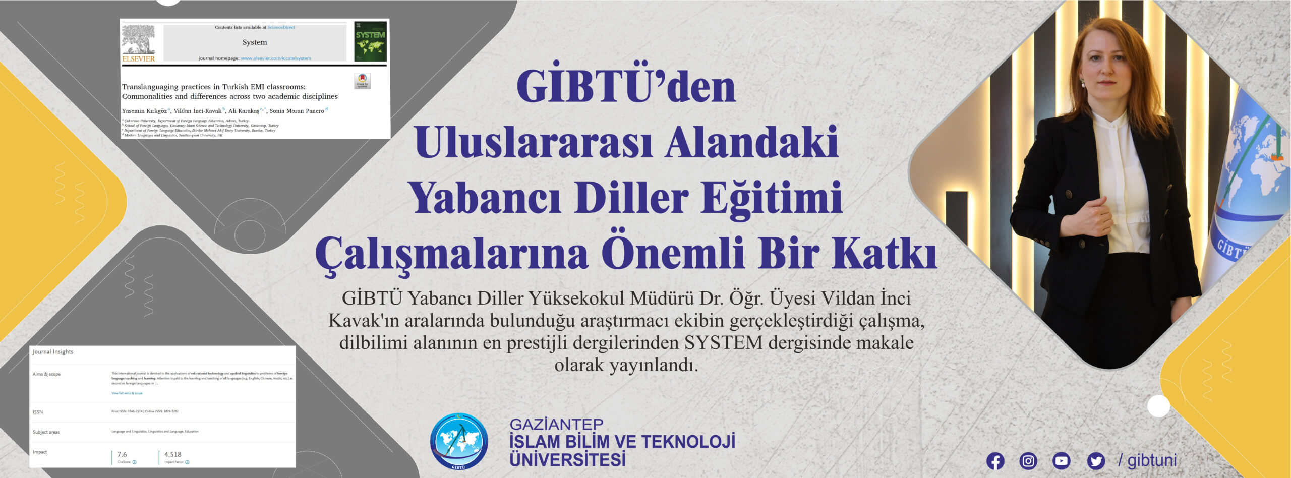 GİBTÜ Yabancı Diller Yüksekokul Müdürü Dr. Öğretim Üyesi Vildan İnci Kavak’ın aralarında bulunduğu araştırmacı ekibin gerçekleştirdiği çalışma, dilbilimi alanının en prestijli dergilerinden SYSTEM Dergisi’nde makale olarak yayınlandı.