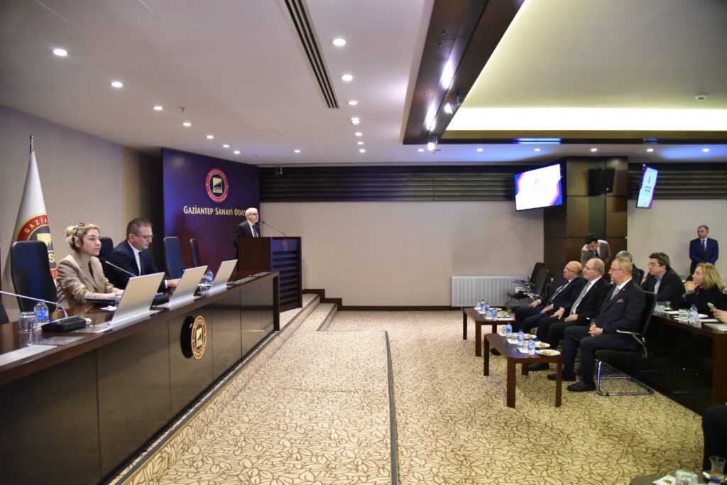 Gaziantep İslam Bilim ve Teknoloji Üniversitesi (GİBTÜ) Rektör Yardımcısı Prof. Dr. Metin Bedir, Mühendislik ve Doğa Bilimleri Fakültesi Öğretim Üyesi Prof. Dr. Cihan Kaleli ve Öğretim Üyesi Doç. Dr. İpek Atik Gaziantep Sanayi Odası Meclis üyeleri ile bir araya geldi.