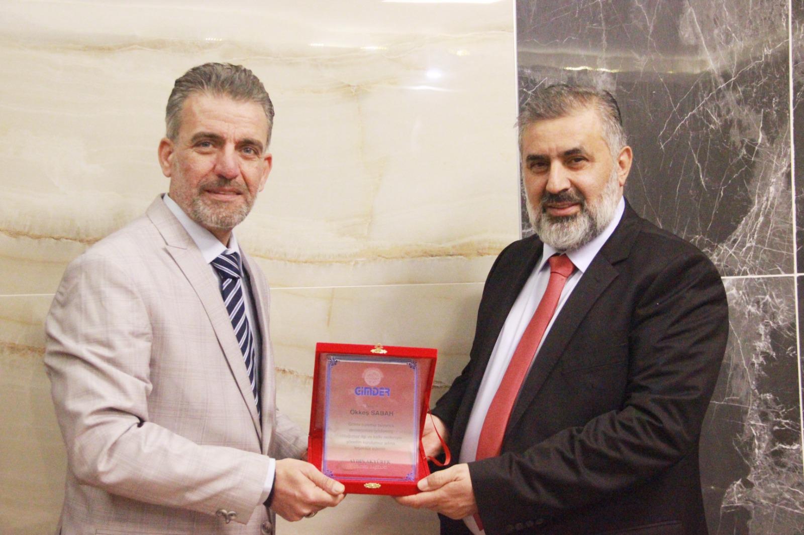 Kongre sonunda GİMDER’in yeni başkanı Ökkeş Sabah, Aydın Akyürek’e yönetim adına bir plaket vererek hizmetleri için teşekkür etti.