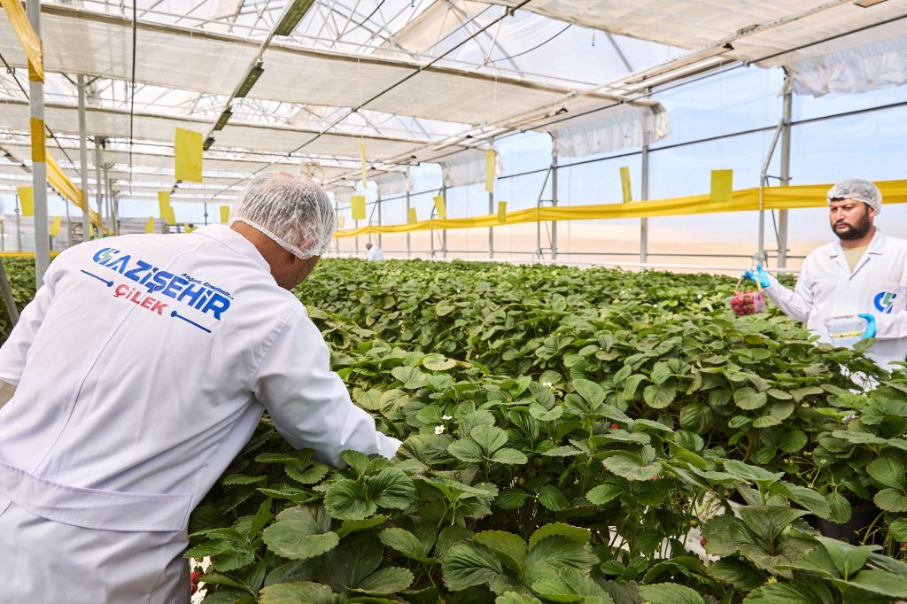 Katı Atık Düzenli Depolama Sahası’nda kurulan ve burada üretilen metan gazından elde edilen elektrikle ısıtılan çilek serası, topraksız tarım teknikleriyle üretim yapıyor. Hindistan cevizi kabuğunda yetiştirilen çilekler, özel LED aydınlatmalarla fotosentez süresi artırılarak yıllık 8 ton üretiliyor.