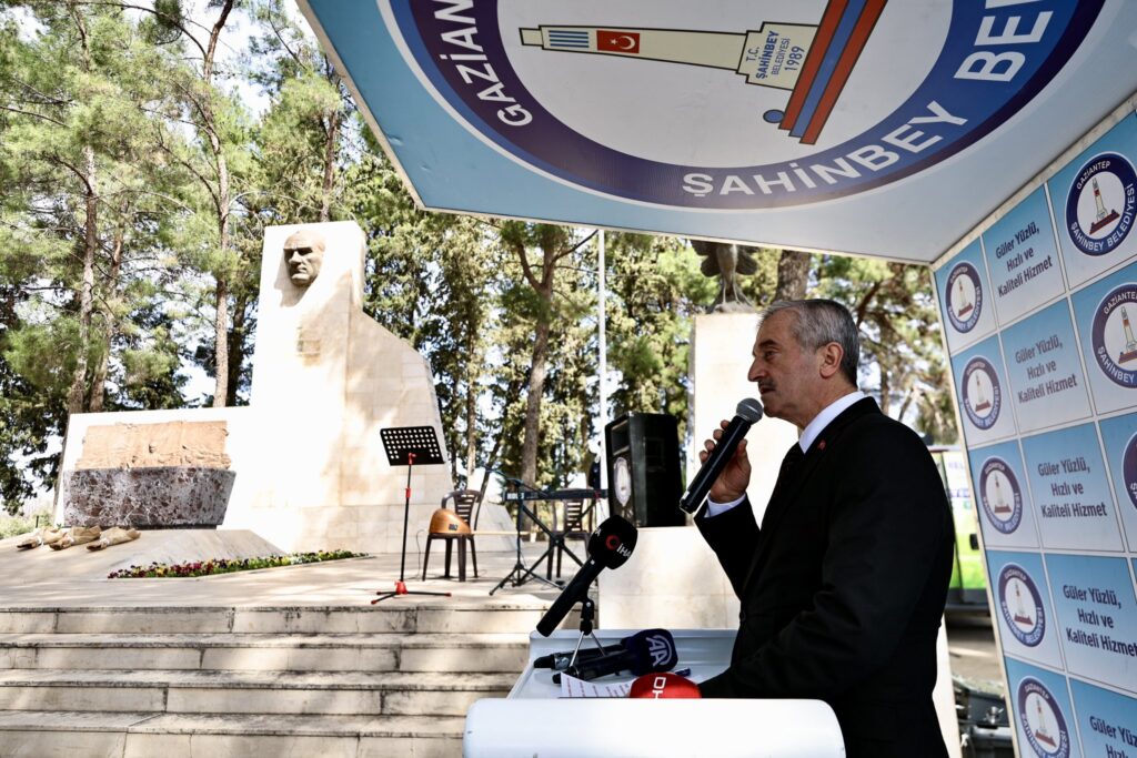 Şahinbey Belediye Başkanı Mehmet Tahmazoğlu, 105 yıl önce burada çok büyük bir destanın yazıldığını belirterek, “Bugün Şehr-i Ayıntab-ı Cihan’ın kahraman evlatlarından, Şahinbey’i anmak için bir araya geldik. Şahinbey, sadece bir komutan, sadece bir asker değildi. O, bu milletin yüreğinde yanan bağımsızlık ateşinin ta kendisiydi. O, vatan sevgisinin, imanın ve direnişin sarsılmaz timsaliydi. O, canından aziz bildiği vatanı için, bayrağı için, ezanı için toprağa düşen bir istiklal neferiydi. O, bu topraklarda düşman postalı gezmesin diye, Antep’in namusu çiğnenmesin diye, gözünü kırpmadan canını verdi. Şehit olmadan önce; “şahadete kavuşmak, Ağustos ayı sıcağında soğuk su içmekten daha tatlı gelir” diyen Şahinbey, mertliğin, mücadelenin emsali, Kuva-yi Milliye önderlerimizden, İstiklal Harbi’nin Aziz neferi, Şahinbey. Anadolu’nun asırlık Türk yurdu, İstiklal madalyalarıyla dolu kadim şehrin yiğidi. 105 yıl önce kahramanlık destanı yazarak bizlere onurlu Kurtuluş Günü’nü armağan eden. “Düşman arabaları cesedimi çiğnemeden Antep’e giremez” şeref sözünü tarihe kazıyan yiğit Şahinbey’i şehadetinin 105. yıl dönümünde rahmetle anıyor, aziz hatıralarına saygılarımı sunuyorum” dedi.