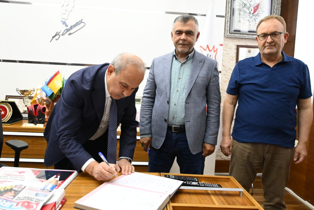 Okan Tere kendini yeşil beyazlı renklere bağlayan imzayı Oğuzeli Belediye Başkanı Mehmet Sait Kılıç’ın makamında attı.