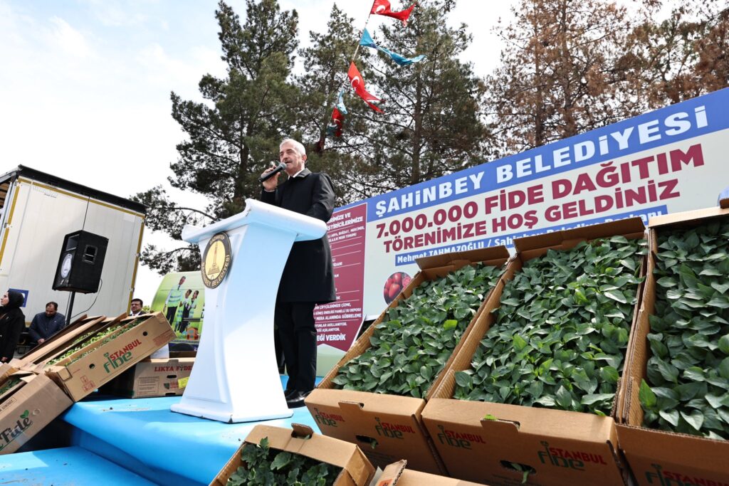 Şahinbey Tarım İlçe Müdürü Mustafa Güzel çiftçilere en kaliteli fidelerin dağıtıldığını belirterek “Devletimiz ve belediyelerimiz çiftçilere çok önemli destekler veriyor. 7 yıldır Şahinbey Belediye Başkanımız Mehmet Tahmazoğlu her zaman çiftçimizin yanında. Çiftçimizin ürettiği ürünün yüzde ellisini karşılıyor. Tarımsal olarak çok ciddi destekler veriliyor. 7.000.000 fide dağıtıyoruz ve bu fideler ortalama 3500-4000 dekar alana dikiliyor. 50 Milyonun üzerinde maliyeti olan bu projemizde yaklaşık 400 milyon civarı bir geri dönüş bekliyoruz. Vermiş olduğu desteklerden dolayı Şahinbey Belediye Başkanımız Mehmet Tahmazoğlu’na teşekkür ediyorum” dedi.