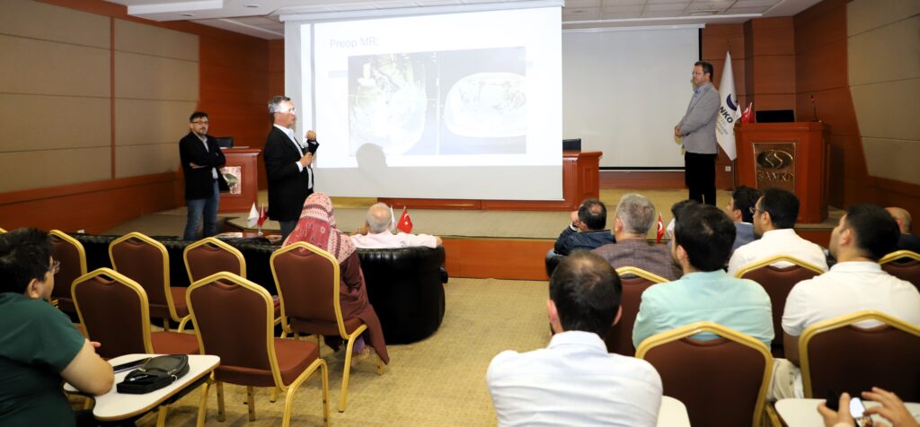 Yöneticiliğini SANKO Üniversitesi Hastanesi Beyin ve Sinir Cerrahisi Uzmanı Doç. Dr. Murat Ulutaş’ın yaptığı toplantıda, SANKO Üniversitesi Tıp Fakültesi Beyin ve Sinir Cerrahisi Ana Bilim Dalı’ndan Dr. Öğr. Üyesi Erdal Yayla, “Omurga Ameliyatlarında Kaynama Problemleri” konulu bir sunum yaptı.