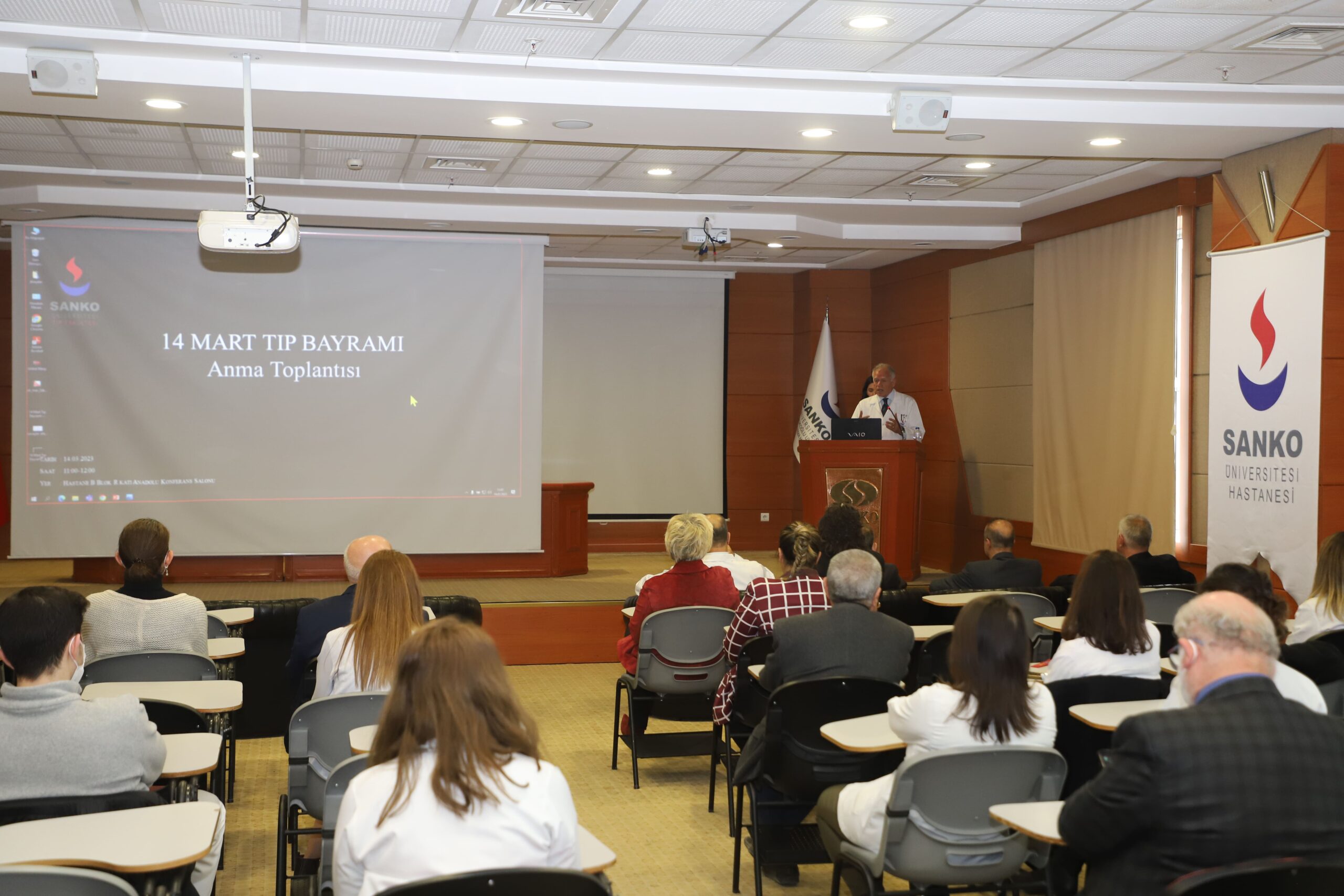 SANKO Üniversitesi Tıp Fakültesi Histoloji ve Embriyoloji Ana Bilim Dalı Başkanı Prof. Dr. Şahin Abdullah Sırmalı ise; Savaşlar, Afetler ve Hekimler konulu bir sunum yaptı.