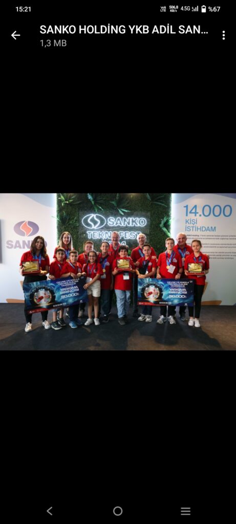 SANKO Okulları 8’inci öğrencileri Neva Doktoroğlu ve Kerem Utku Kaleli’nin danışman öğretmenleri Fatih Mehmet Günaydın rehberliğinde hazırladıkları “Otomobil Lastiklerinden Kaynaklanan Mikroplastiklerin Kaynağında Toplanması” projesi, TEKNOFEST Çevre ve Enerji Teknolojileri Yarışması’nda Türkiye birincisi oldu.