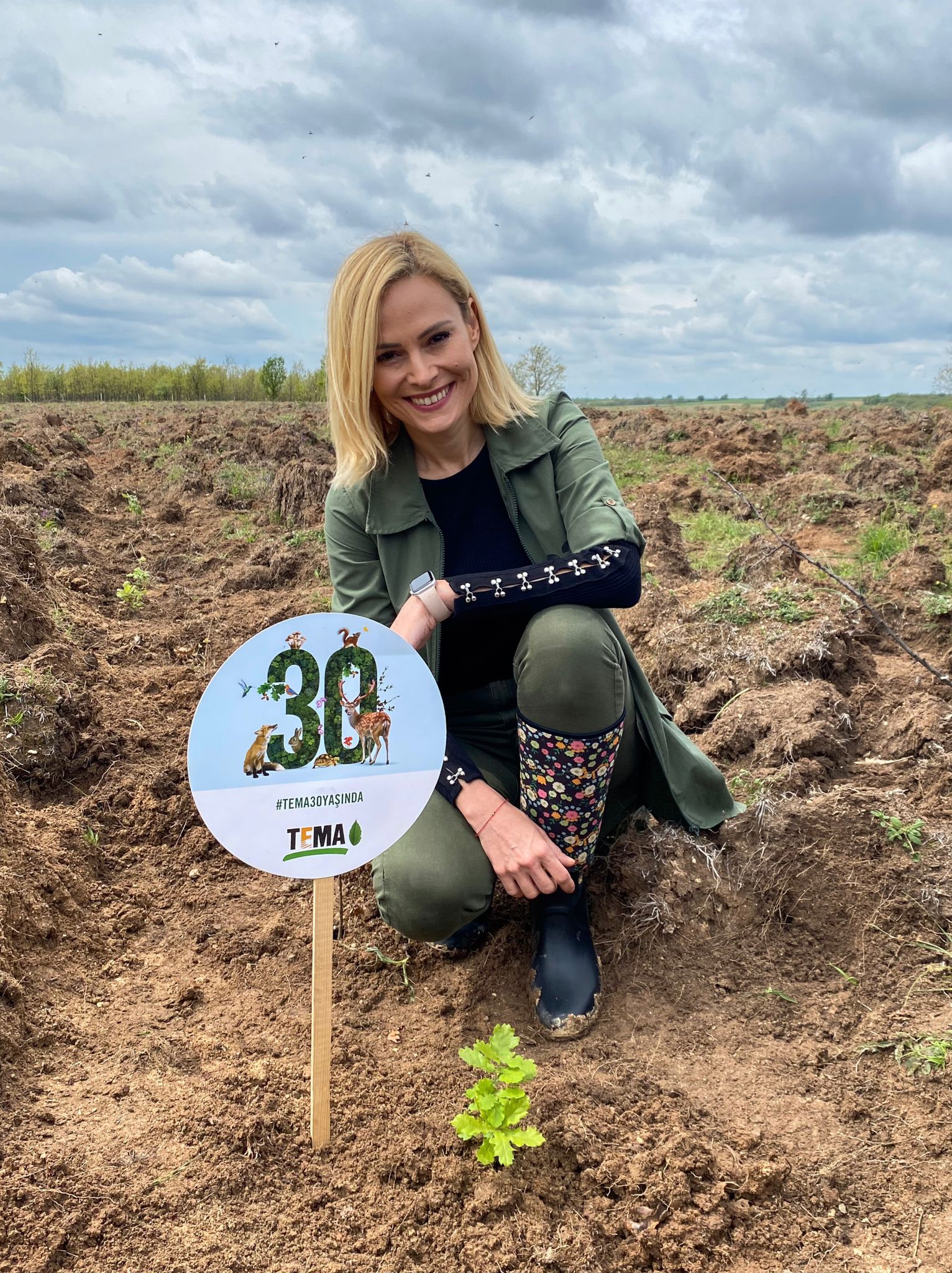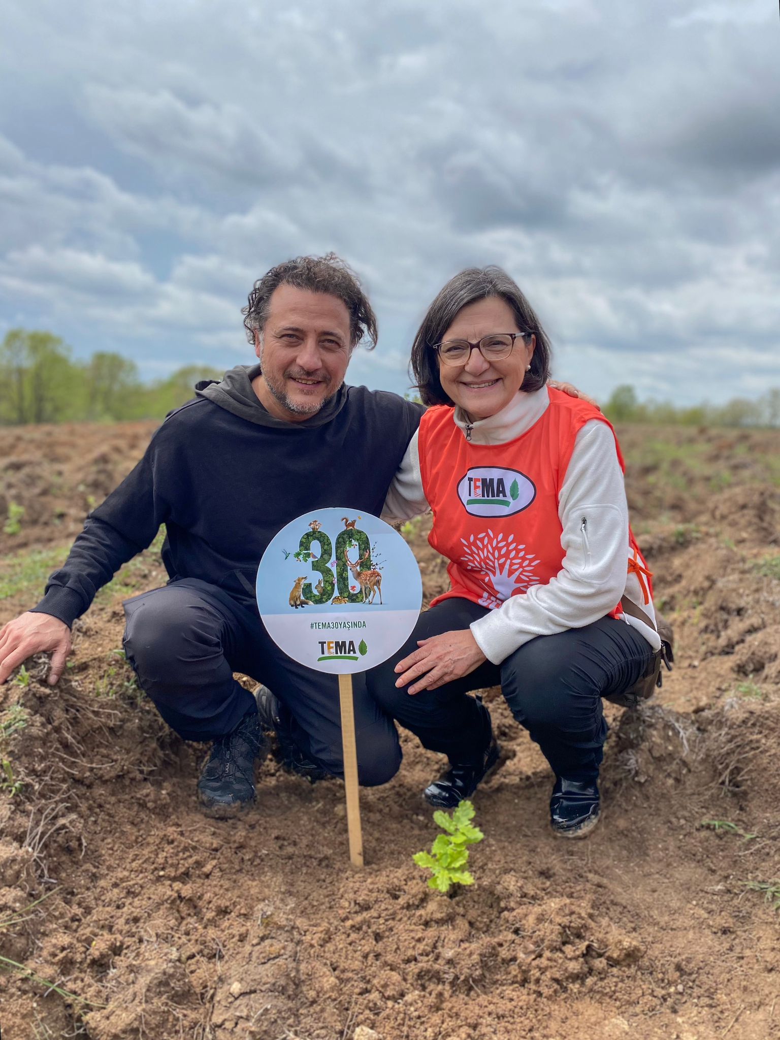TEMA Vakfı’nın 30’uncu yıl gecesinin sunuculuğunu gönüllü olarak üstlenen Seda Öğretir ve Yiğit Özşener’in de katılımıyla, 7 hatıra ormanından biri olan ve Kırklareli ili Lüleburgaz ilçesi, Celaliye köyü sınırları içerisinde yer alan ormana ziyaret gerçekleştirildi. Etkinliğe İstanbul Orman Bölge Müdürlüğü Ağaçlandırma Şube Müdürü Talip Kavlak ve Kırklareli Orman İşletme Müdürü İsmail Karakaya, TEMA Vakfı Yönetim Kurulu Başkanı Deniz Ataç, Genel Müdürü Başak Yalvaç Özçağdaş ile Vakıf gönüllüleri ve Genel Merkez çalışanları katıldı. Tabela açılışının ardından fidan dikim etkinliğine geçildi ve temsili fidanlar toprakla buluşturuldu.